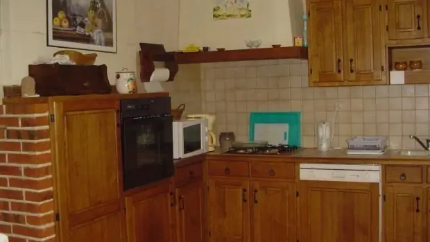 Ground floor: 1 fitted kitchen with dining area 1 dining room with fireplace (insert) sofa bed, television. 1st floor: 1 bedroom with double bed. En-suite shower room 1 bedroom. 2 single beds. 1 wc. 2nd floor: 1 bedroom. 2 single beds. 1 bedroom. 1 single bed. 1 shower room 1 wc. Baby facilities. Outside: 2 enclosed courtyards, 1 sheltered set of garden furniture, barbecue. Charges not included: electric heating (separate meter), tourist tax for over 18s. Deposit €400 and €100 for pets. Services on request: bed linen, €8 per bed and cleaning charge at end of stay €60. Internet wifi; fishing gîte; cycle hire.