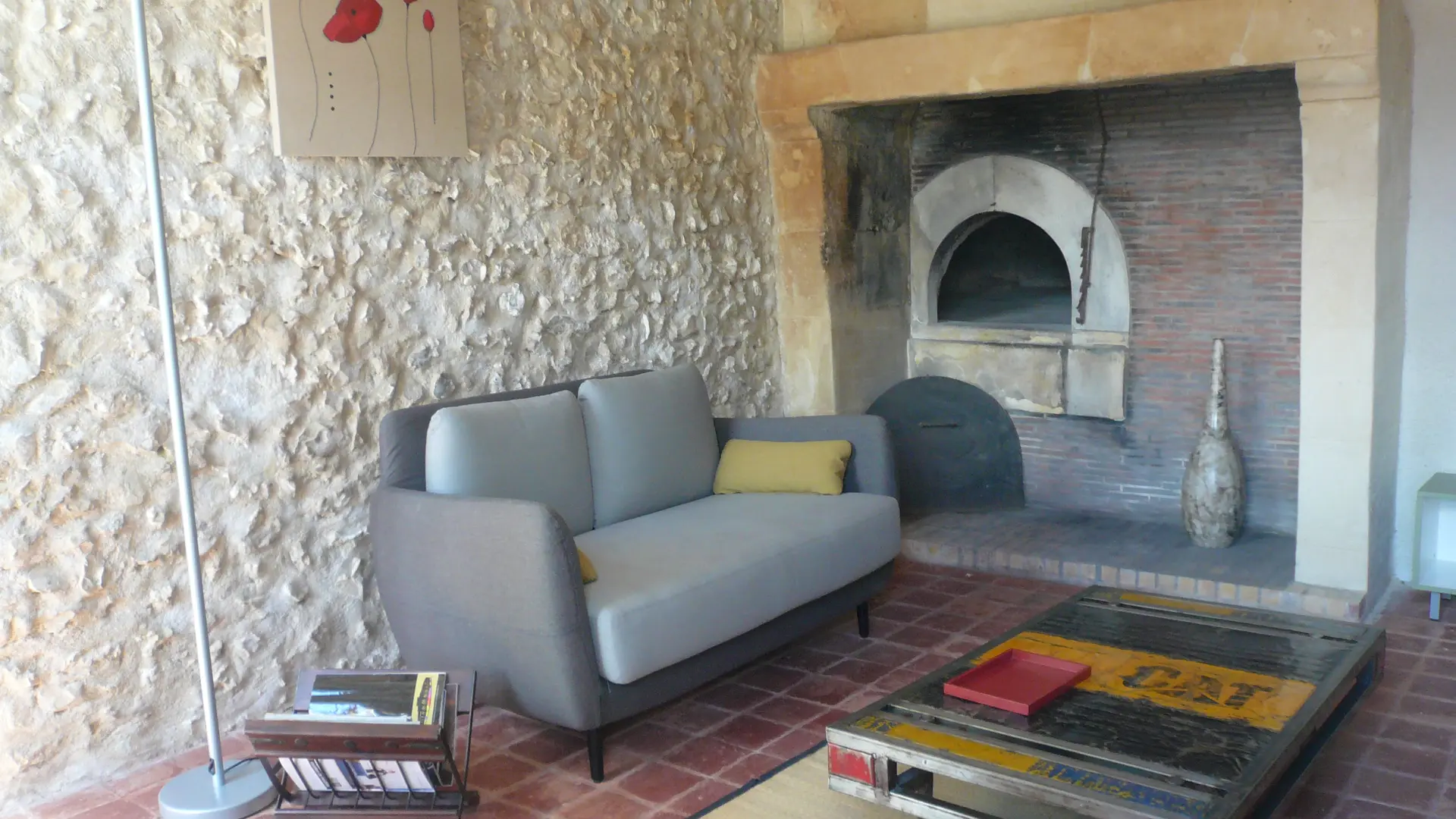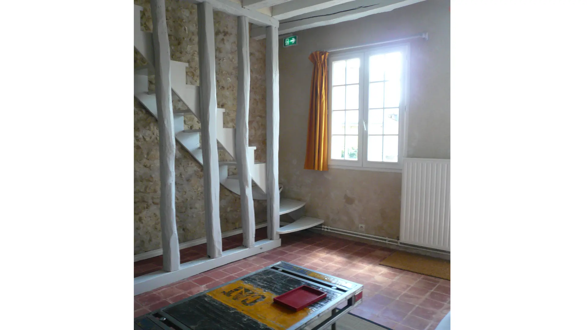 L'Escargo'Thym comprises a living room on the ground floor, with the bedroom and bathroom (Italian shower) with wc on the first floor. Two 0.80m beds or one 1.60m double bed are available.