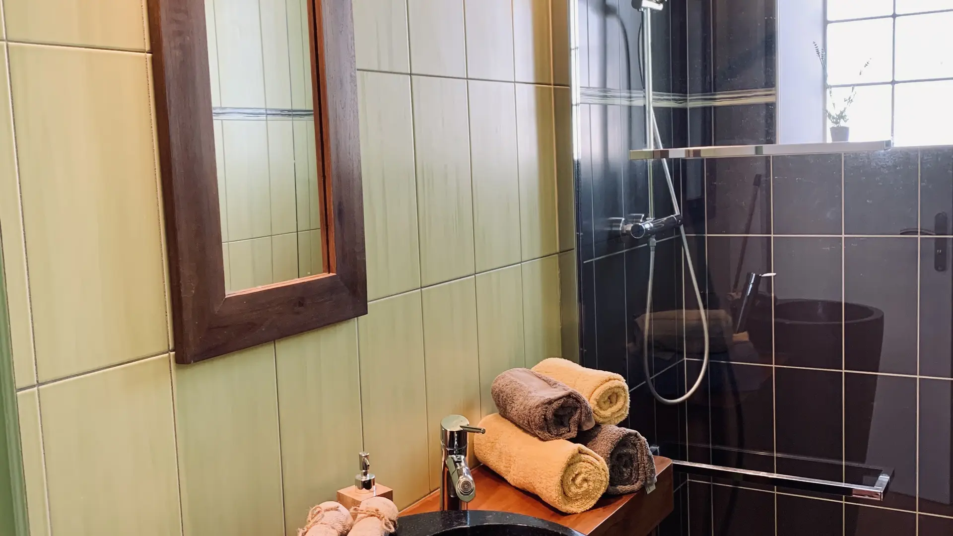 Bin'Home East has two single beds (0.80m.) that can be combined to form a double bed (1.60m.) - and a bathroom with separate toilet.